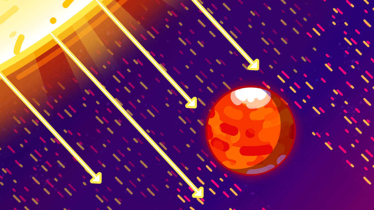 That’s right. Mars’ atmosphere is too thin to insulate the planet and trap heat. Distance also plays a part — since Mars is 50%50% farther from the Sun than Earth, its solar intensity is about 40%40% of Earth’s.