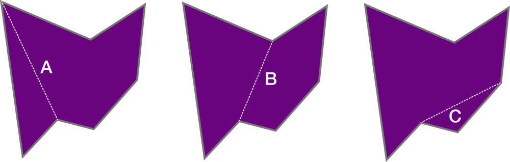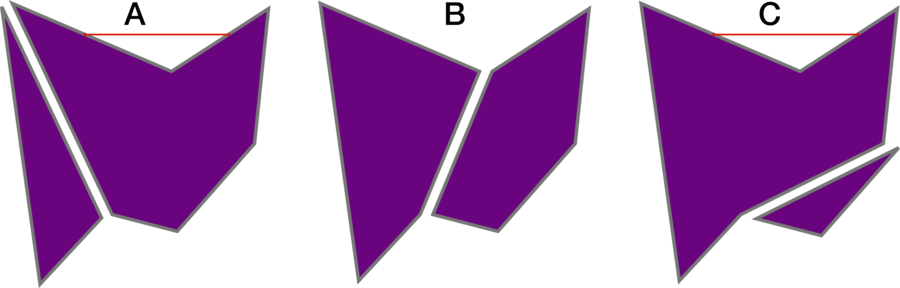 Q,Q, 组合多边形的边界点,R,R, the interior points of the combined polygon, and