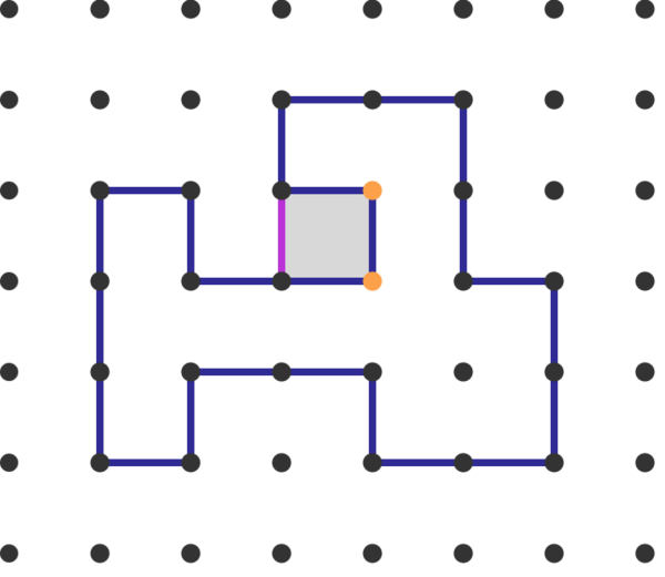 Comparing the formula we just obtained with the original version of Pick’s theorem, we find that they’re nearly the same. The only difference is that now we add the number of holes.