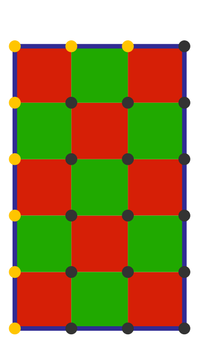 R+(sum of hole boundary points)=I−(sum of hole interior points).R+(sum of hole boundary points)=I−(sum of hole interior points).